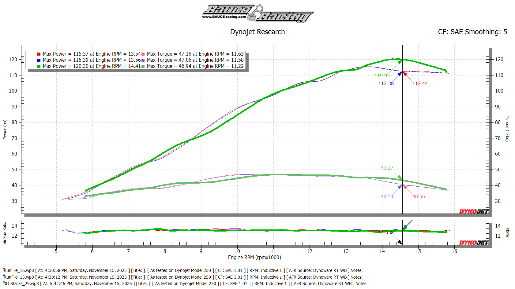 These 3D printed stacks are custom made to our specifications. After years of struggling to find just the right set of stacks that make the best power with the least amount of compromise, we are now offering the very best setup to the public. 3D printed with dimpled funnels provide the best airflow and HP gains possible. No more importing from overseas, or compromising on fitment and power curve.